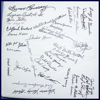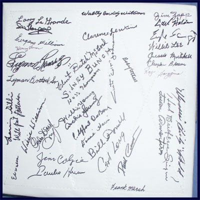 1st Base: One of three bases that accompanied the Signature Series Trading Card Autograph Tour in February 2002. It was personally autographed by the 38 men.