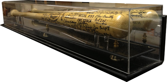 022002 Baseball Bat: This bat accompanied the Signature Series Trading Card Autograph Tour in February 2002 - personally autographed by 36 men at the same time they autographed their personal trading cards.
